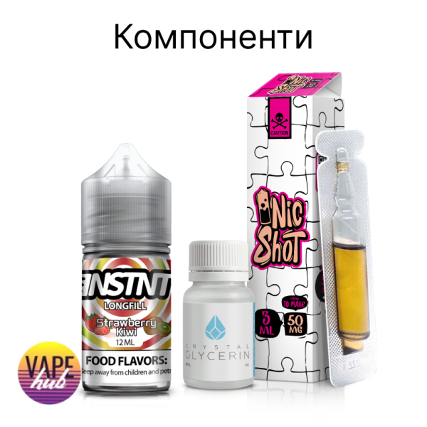 Самозаміс INSTNT 30 мл — це лінійка від виробника INSTNT, створена для тих, хто хоче самостійно контролювати смак, міцність і баланс своєї рідини. Це американський виробник із США, що гарантує високу якість компонентів і відповідність міжнародним стандартам. Бренд добре відомий якістю ароматизаторів та стабільністю смакових профілів, а сама лінійка INSTNT відрізняється від попередніх серій більш концентрованими ароматами та швидким розкриттям смаку вже після мінімального настоювання. Кожен смак створений на основі якісних ароматизаторів і ретельно продуманих рецептів, тому INSTNT дарує яскравий, виразний і водночас гармонійний профіль без зайвої різкості. Лінійка включає 10 яскравих смаків: Blueberry, Apple Peach, Banana, Berry Lemonade, Summer Dream, Strawberry Kiwi, Rainbow, Grape Berry, Triple Melon та Watermelon. Цей набір містить сольовий нікотин із концентрацією 50 мг, що забезпечує швидке насичення та стабільний ефект. Важливо: через високий вміст нікотину й сольовий тип, рідина призначена виключно для малопотужних девайсів — под-систем та MTL-пристроїв. Це гарантує безпечне використання та комфортну затяжку без подразнення. Збалансоване співвідношення VG/PG 50/50 дозволяє насолодитися як насиченим смаком, так і приємною кількістю пари. Така формула підходить для більшості подів, забезпечуючи ідеальну подачу нікотину без втрати смакових якостей. Флакон об’ємом 30 мл оснащений захистом від першого відкриття та зручним носиком для заливання. INSTNT ідеально підходить як новачкам у самозамісі, так і досвідченим вейперам, які цінують гнучкість і стабільну якість. Обирай свій смак та замовляй INSTNT у Vape Hub — створюй ідеальну рідину саме для себе.