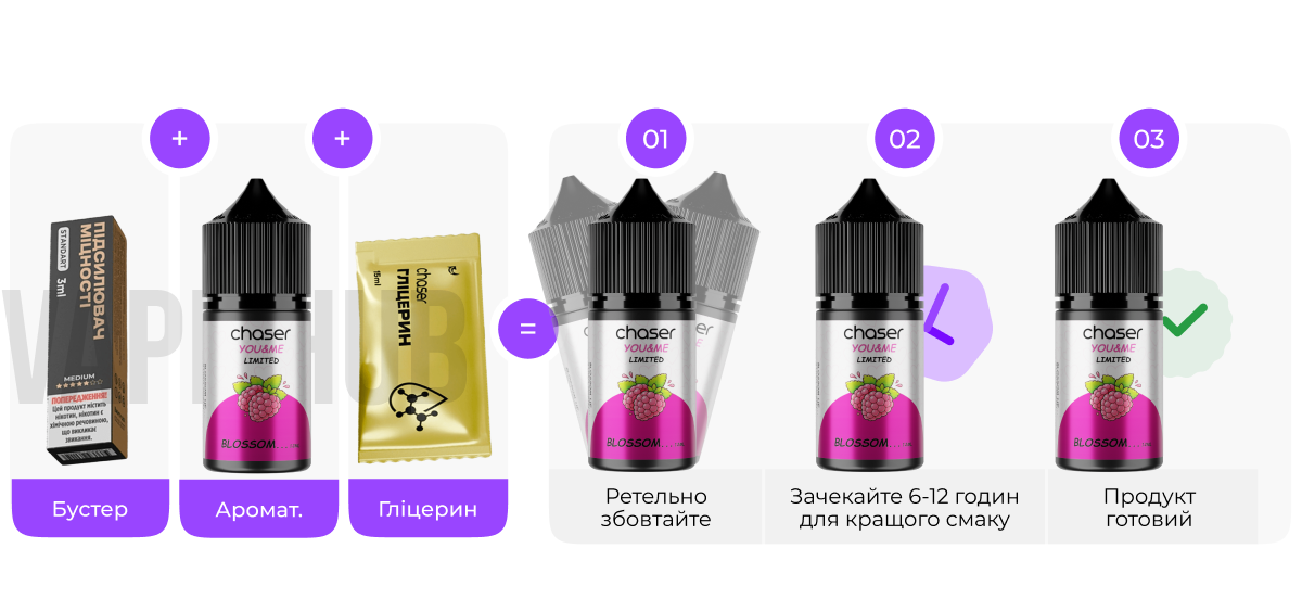 Chaser - украинский производитель, который уверенно сочетает качество, стиль и современные тренды в мире вейпинга. Среди многих его серий особенно выделяется линейка You&Me - изысканная, атмосферная и созданная с особым настроением. Она очаровывает продуманными сочетаниями вкусов и праздничной концепцией, дарящей эмоции с первой затяжки. Формула на солевом никотине с оптимальным соотношением VG/PG 50/50 обеспечивает мягкую передачу вкуса и комфортное использование в большинстве под-системах. Крепость доступна в вариантах 50 или 65 мг, что позволяет каждому выбрать свой уровень насыщенности. Объём флакона - 30 мл, а защита первого вскрытия гарантирует безопасность и оригинальность продукта.You&Me - это лимитированная коллекция, специально подготовленная ко Дню влюблённых. В неё входят три уникальных вкуса: BLOSSOM, TWO HEARTS и ELECTRIC TOUCH - каждый со своим характером и настроением. Ограниченное количество вкусов делает серию ещё более желанной для ценителей эксклюзива. Жидкость отлично подходит как для новичков, так и для опытных пользователей, обеспечивая стабильную работу в большинстве под-систем и совместимых устройствах. Если вы ищете сочетание качества, атмосферы и ярких впечатлений - выбирайте Chaser You&Me и заказывайте на сайте Vape hub.
