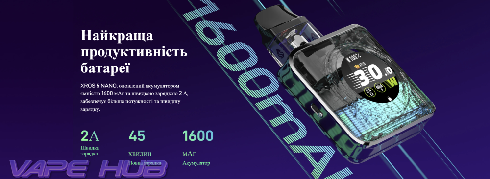 - Універсальна сумісність: працює з усіма картриджами лінійки XROS, що дозволяє змінювати смаки на будь-який смак.